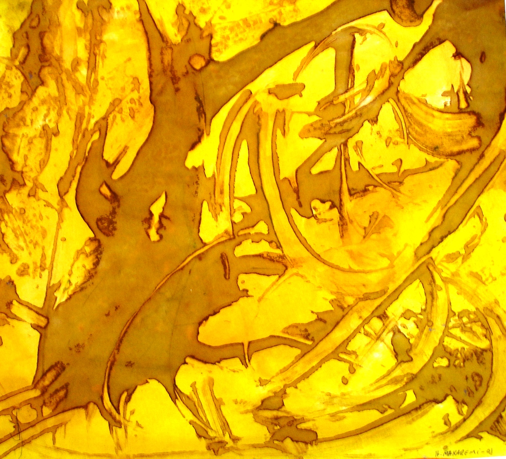 خاطرات کاربرد حنا در ذهن من. حنا را بر پوست می کشیدیم تا زیبایی بیافرینیم, که بر پوست بماند, شاید برای آنکه پوست , چیز دیگری به جز واقیعت جهان خارج را نیز بیاد بیاورد. من نیز از حنا به همین دلیل استفاده می کنم. طبیعت که هم زیبایی است و هم پایندگی, گویی می توان شکل دیگری از ساختار چاپ را اختراع کرد با استفاده از این ضخامت بسیار نازک حنا بر کاغذ , بر پارچه یا بر پوست...یا بر حافظه شکننده خودمان ...